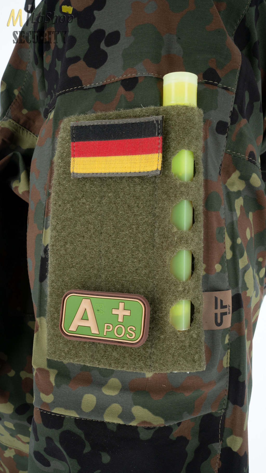 • Két tépőzáras rész levehető huzattal a felkarokon, nyílásokkal fényrudak és tollak számára