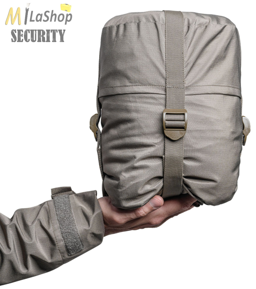 • A parka laposan kerül szállításra, és a mellékelt kompressziós zsákban tárolható (pl. M méret összenyomva = Ø 22 x M 30 cm)